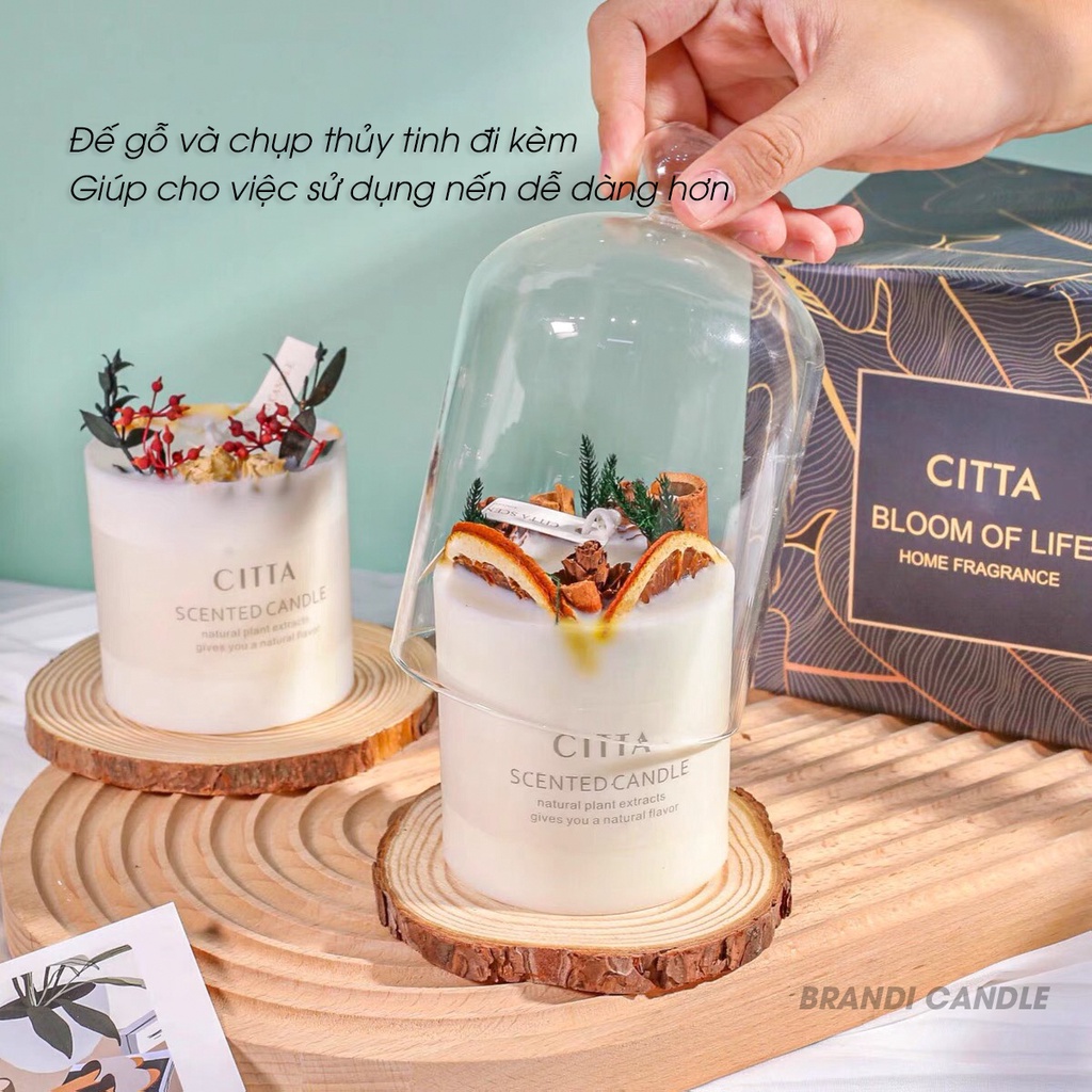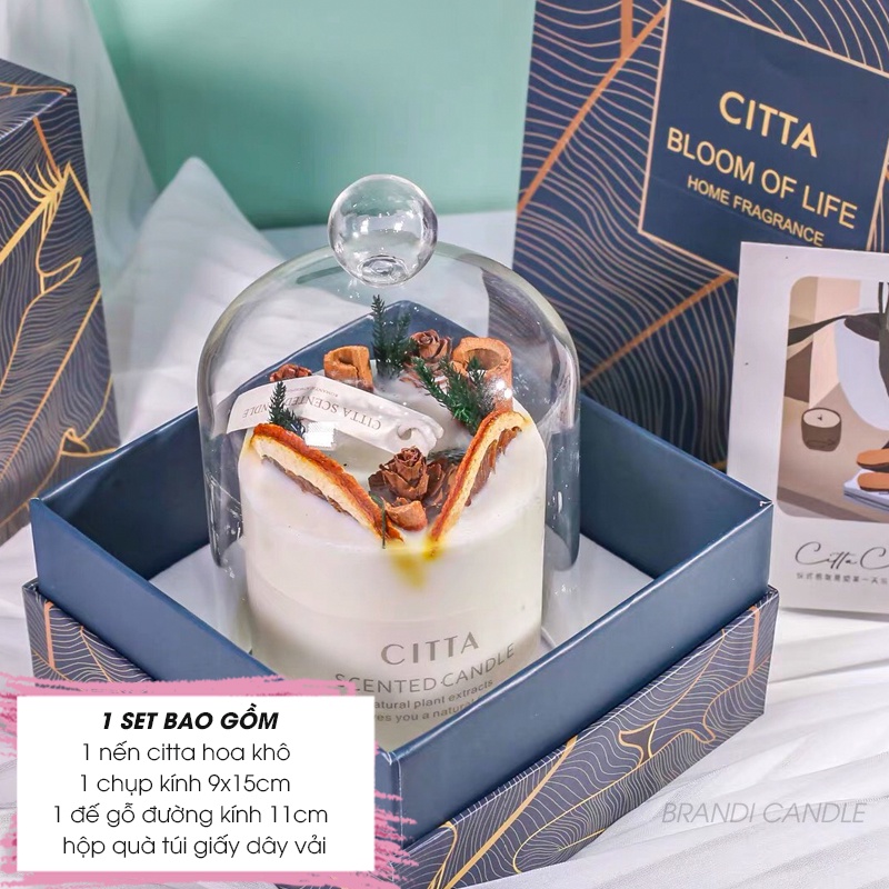 🌻SET NẾN THƠM CITTA TRANG TRÍ HOA KHÔ TỰ NHIÊN ĐI KÈM ĐẾ GỖ CHỤP THỦY TINH HỘP VÀ TÚI GIẤY SANG TRỌNG🎁 MỘT SET BAO GỒM