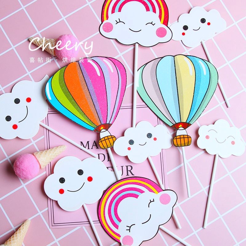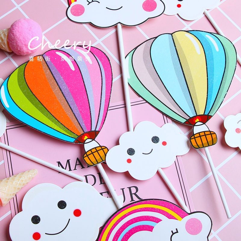 Giới thiệu Set que cắm mây cười + khinh khí cầu đậm