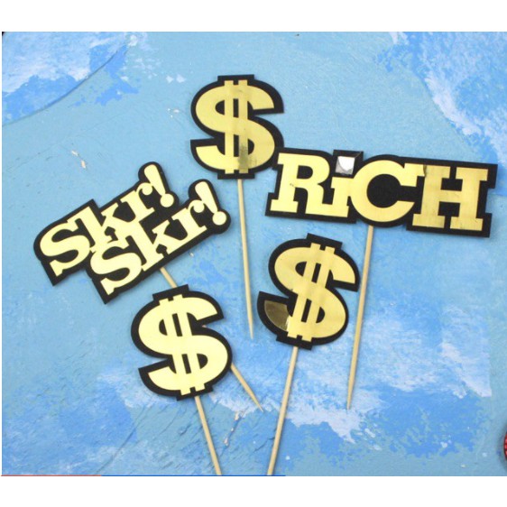 Giới thiệu Set que cắm tiền chữ s, rich, skr trang trí bánh kem