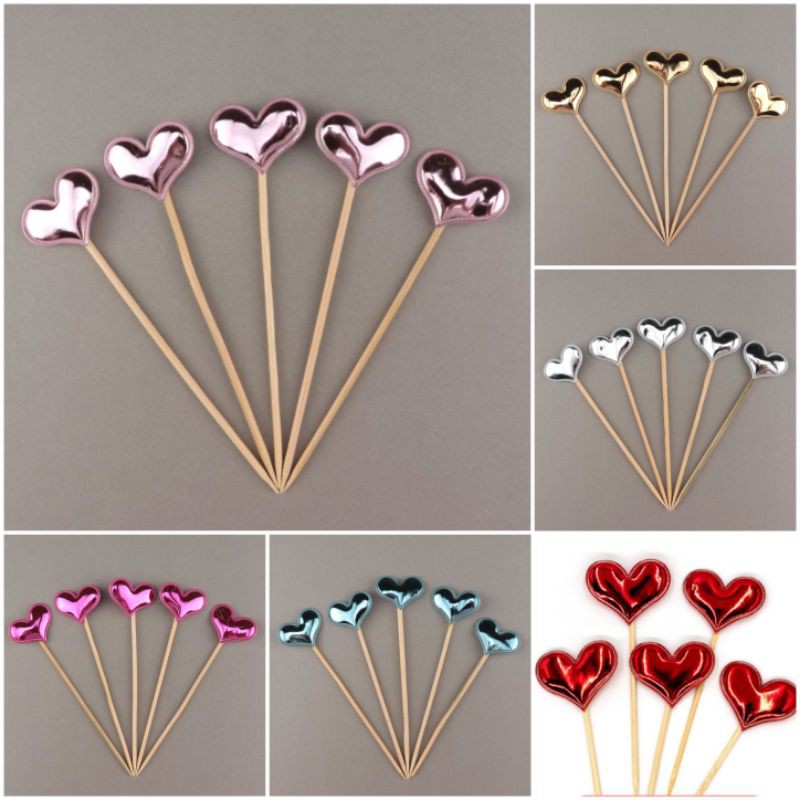 Set cắm trang trí bánh sinh nhật tim da (1 set 5 que). Que cắm bánh sinh nhật hình trái tim đáng yêu , topper cake100% mặt hàng mới và chất lượng cao (hàng loại 1). Hoàn hảo cho đám cưới, sinh nhật, tiêcj tùng, trang trí bánh kem...