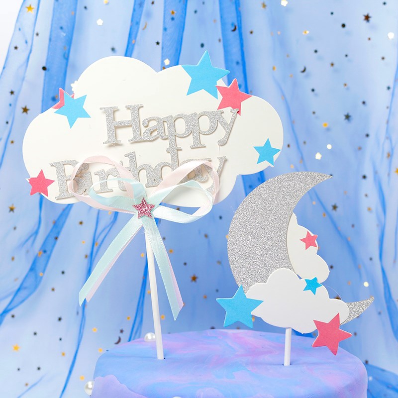 Nhà cửa & Đời sống > Trang trí nhà cửa > Khác || Set que HPBD mây trắng + trăng bạcCòn hàng