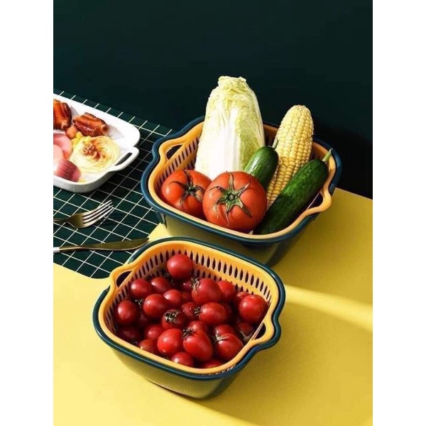 Sét rổ 6 món Chậu Kèm Rổ Dáng Vuông Mới siêu tiện lợi - chất liệu nhựa pp an toàn