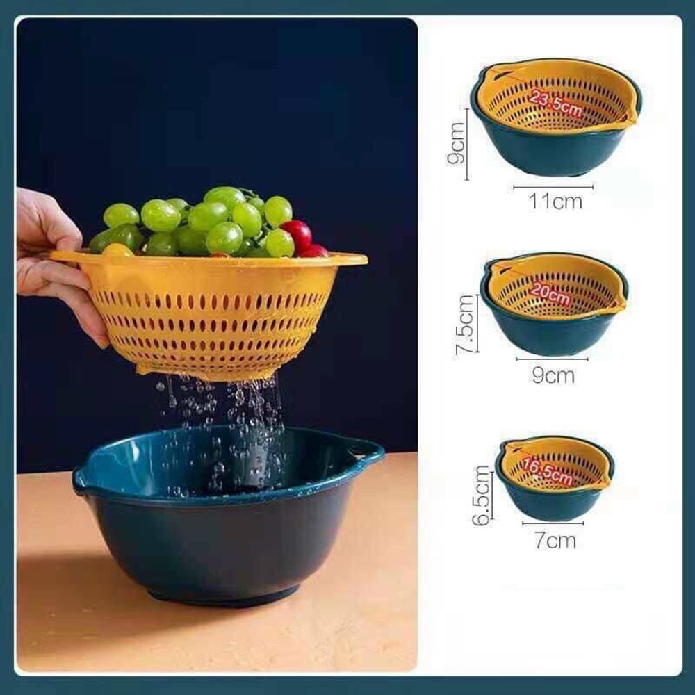 Set rổ kèm chậu 6 món bộ 3 rổ và chậu thau nhựa rửa rau củ đựng hoa quả trái cây 2 lớp hình tròn, vuông