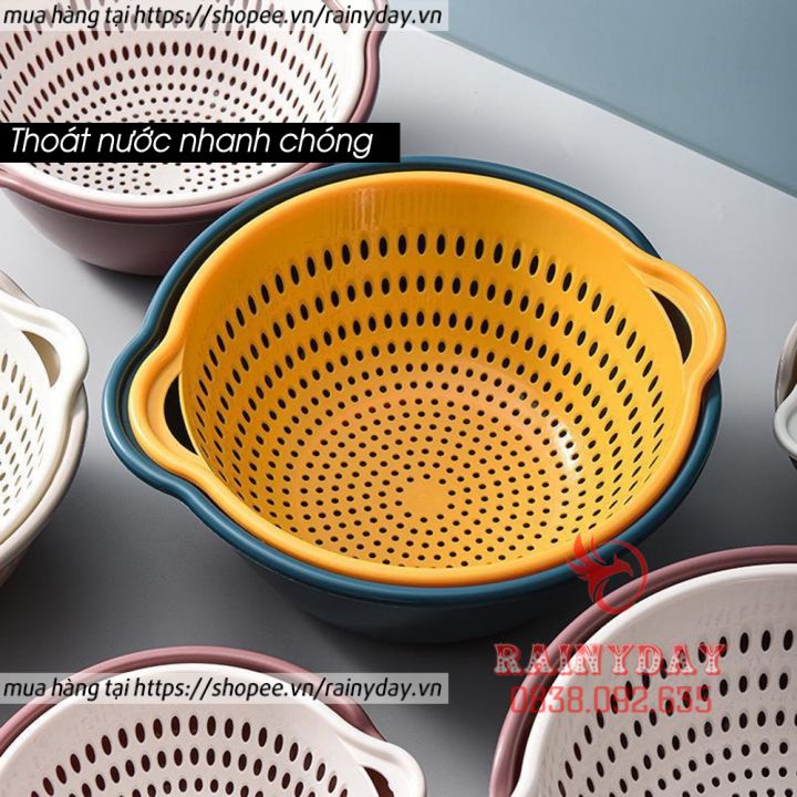 Nhà cửa & Đời sống > Dụng cụ chăm sóc nhà cửa > Chậu, xô & gáo nước || Set rổ kèm chậu 6 món bộ 3 rổ và chậu thau nhựa rửa rau củ đựng hoa quả trái cây 2 lớp hình tròn, vuôngCòn hàng