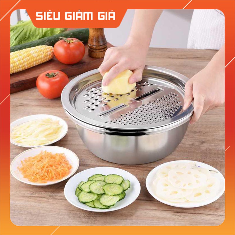 Bộ rổ chậu inox 304 siêu tiện lợi và bền bỉ... nạo rau củ quả theo 4 kiểu luôn nha... bên dưới là rổ inoz bền bỉ kèm theo chậu sáng choang ... rửa rau? đựng rau củ quả tiện vô cùng