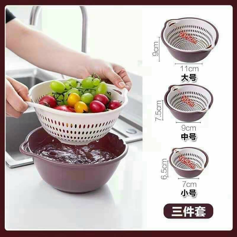 Kết hợp 2 loại rổ thành một đôi, một chiếc có công dụng để ráo, 1 chiếc để đựng nước, mang lại hiệu quả mỗi khi ngâm, rửa