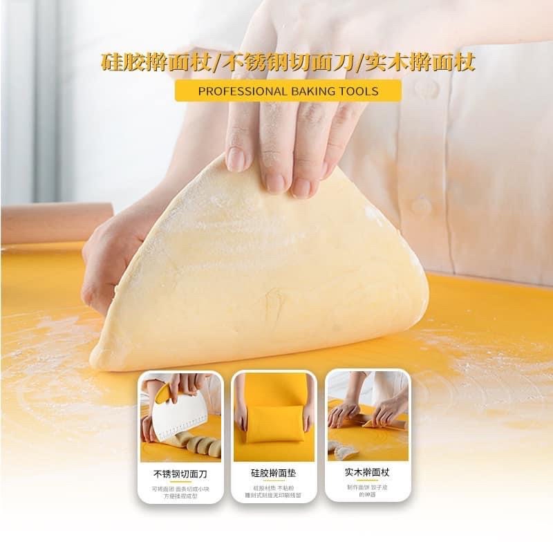 Nhà cửa & Đời sống > Dụng cụ nhà bếp > Dụng cụ nướng & trang trí bánh || set silicon cán nhồi bột+ cắt bột+cây cán gỗ 55x65cmCòn hàng