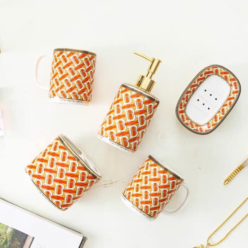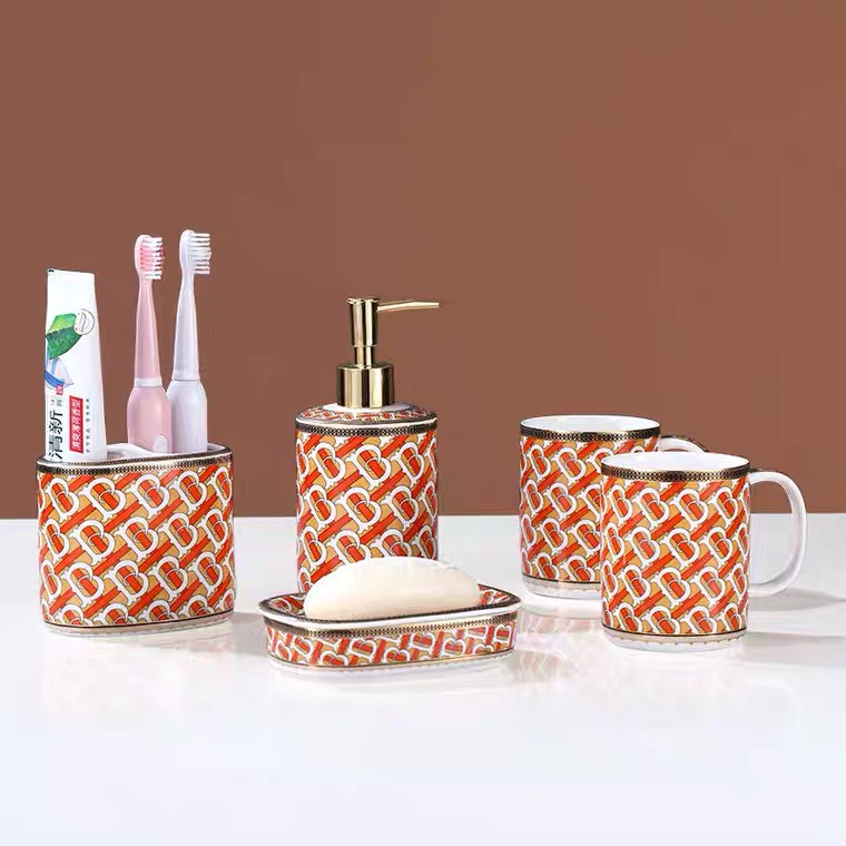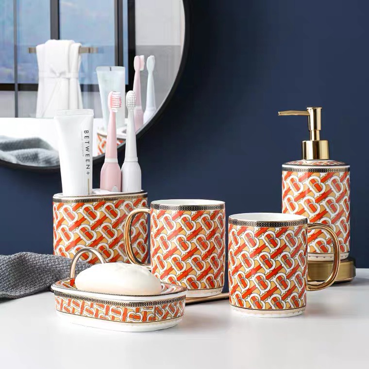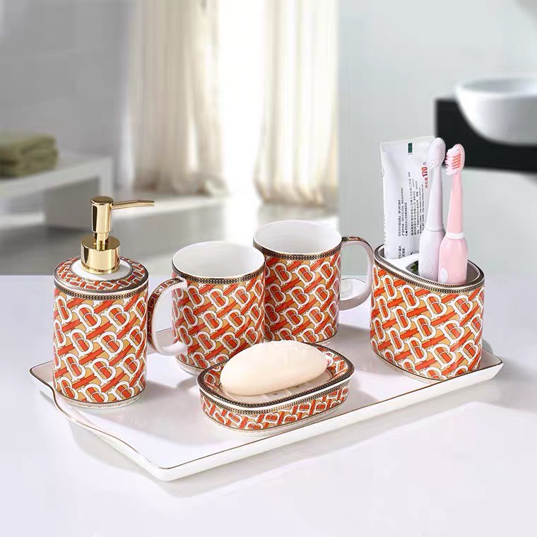 Giới thiệu Set tăm chất liệu sứ xương, màu sắc đỏ, bộ dụng cụ nhà tắm, vòi xịt, cốc, khay bánh xà phòng