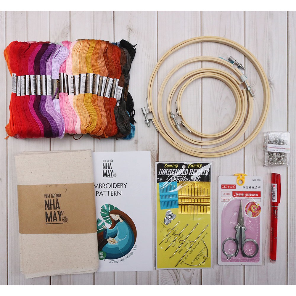 Sở thích & Sưu tầm > Dụng Cụ May Vá || [Set thêu chỉ thường] 100 tép chỉ + 4 khung tre + Phụ kiệnCòn hàng