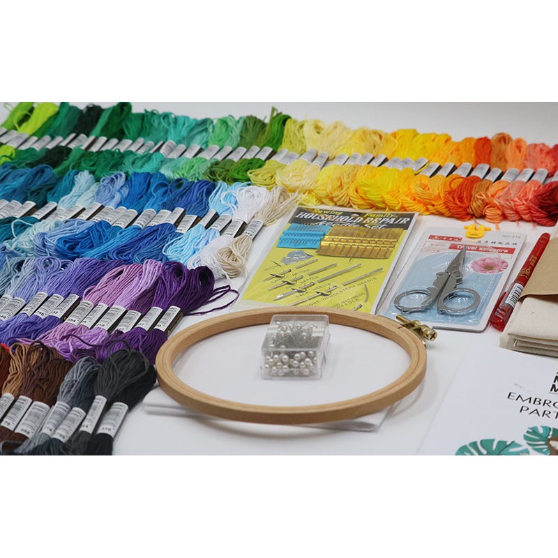 Sở thích & Sưu tầm > Dụng Cụ May Vá || [Set thêu chỉ thường] 150 màu chỉ + Khung gỗ du + Phụ kiệnCòn hàng