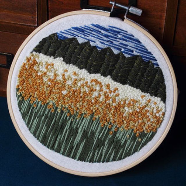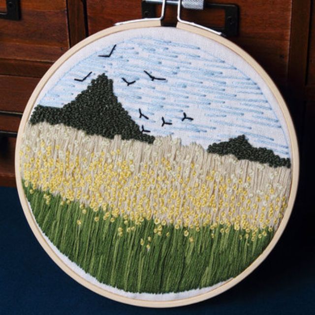 Set thêu hiện đại embroidery (khung, chỉ, vải, kim đủ bộ)