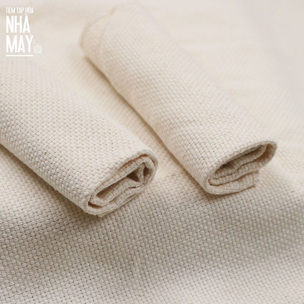 6. Vải aida mềm khổ 50x160cm, chất liệu cotton, sợ vải to, chất vải mềm mại, độ mỏng vừa, ít co giãn. Vải ứng dụng trong thêu len xù (punch needle), thêu thảm... Vải có màu trắng ngà tự nhiên.
