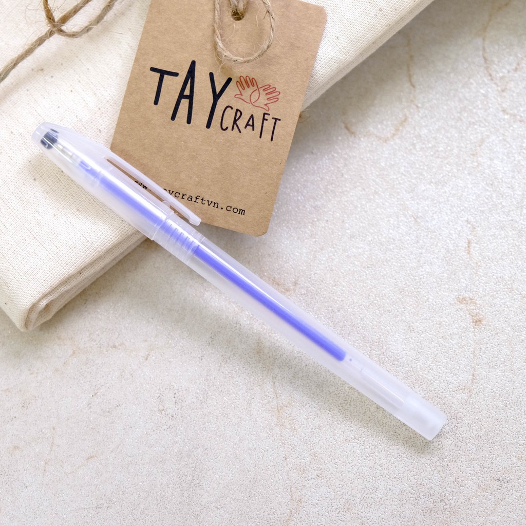 - 01 bút vẽ vải bay màu mực xanh để sao hình thêu (mực sẽ bay màu sau khi vải được ngâm nước hoặc giặt nhẹ bằng xà phòng)