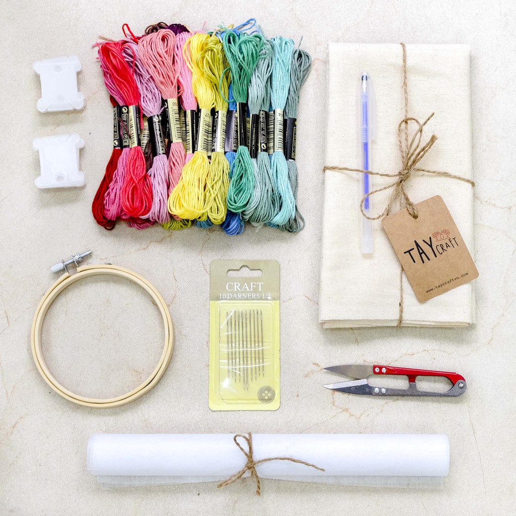 Bạn đang muốn bắt đầu bước chân vào thế giới thêu thùa? Khi mới bắt đầu học thêu, chắn hẳn bạn sẽ rất bỡ ngỡ khi "bộ môn" này có quá nhiều vật dụng cần mua, khiến bạn hoang mang không biết phải chọn lựa những gì.TAY Craft xin gợi ý cho bạn Set thêu Mầm tại nhà chúng mình, bao gồm đầy đủ các dụng cụ, phụ liệu thêu thùa dành cho người mới tập thêu. Nhờ có kinh nghiệm thực tế nên chúng mình đã lựa chọn những vật dụng thiết yếu và được sử dụng thường xuyên nhất để đưa vào set nguyên liệu, giúp bạn tập thêu một cách dễ dàng nhất mà không tốn thêm chí phí cho những món đồ không cần thiết.