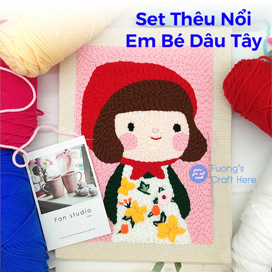 Giới thiệu Set Thêu Nổi Thêu Len Xù Em Bé Dâu Tây Dành Cho Người Mới Bắt Đầu, Punch Needle Set Strawberry Girl for Beginners