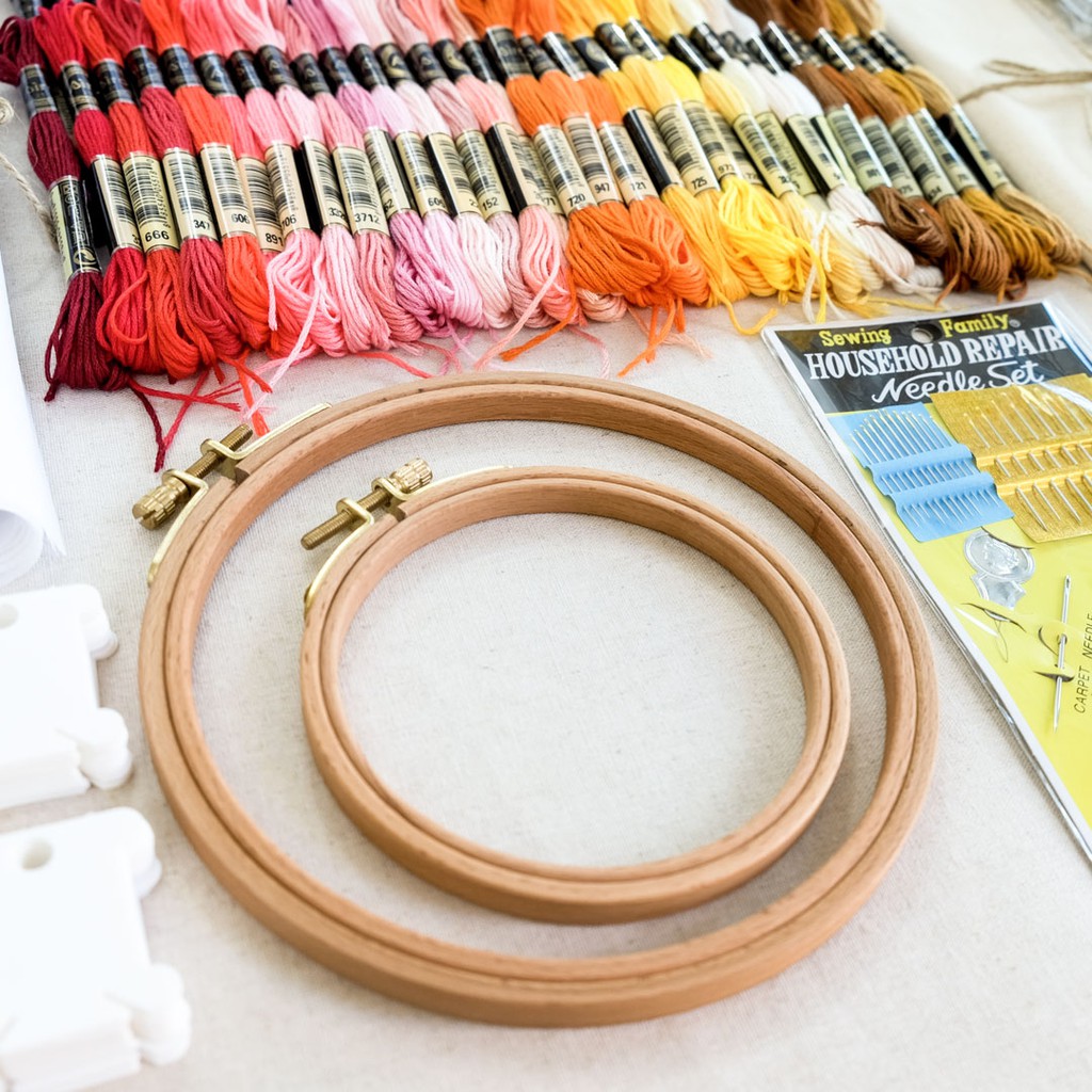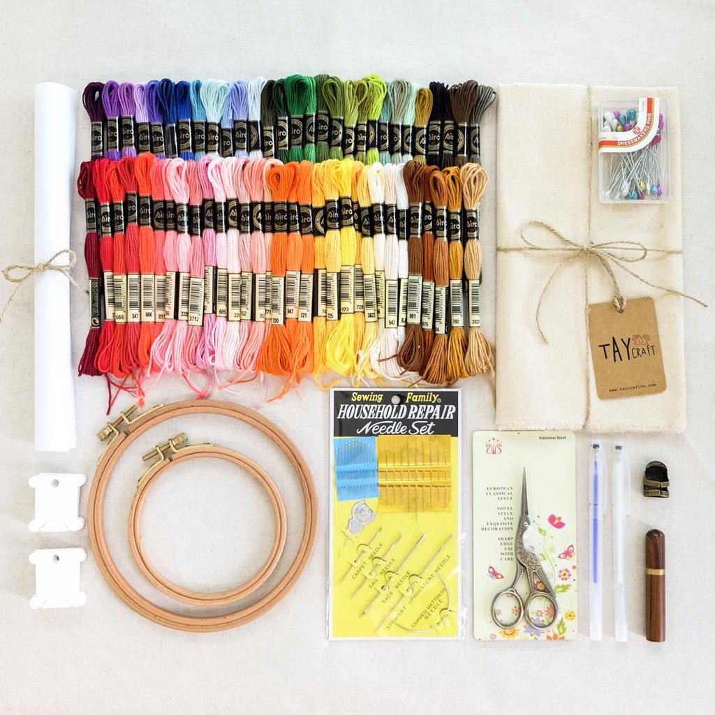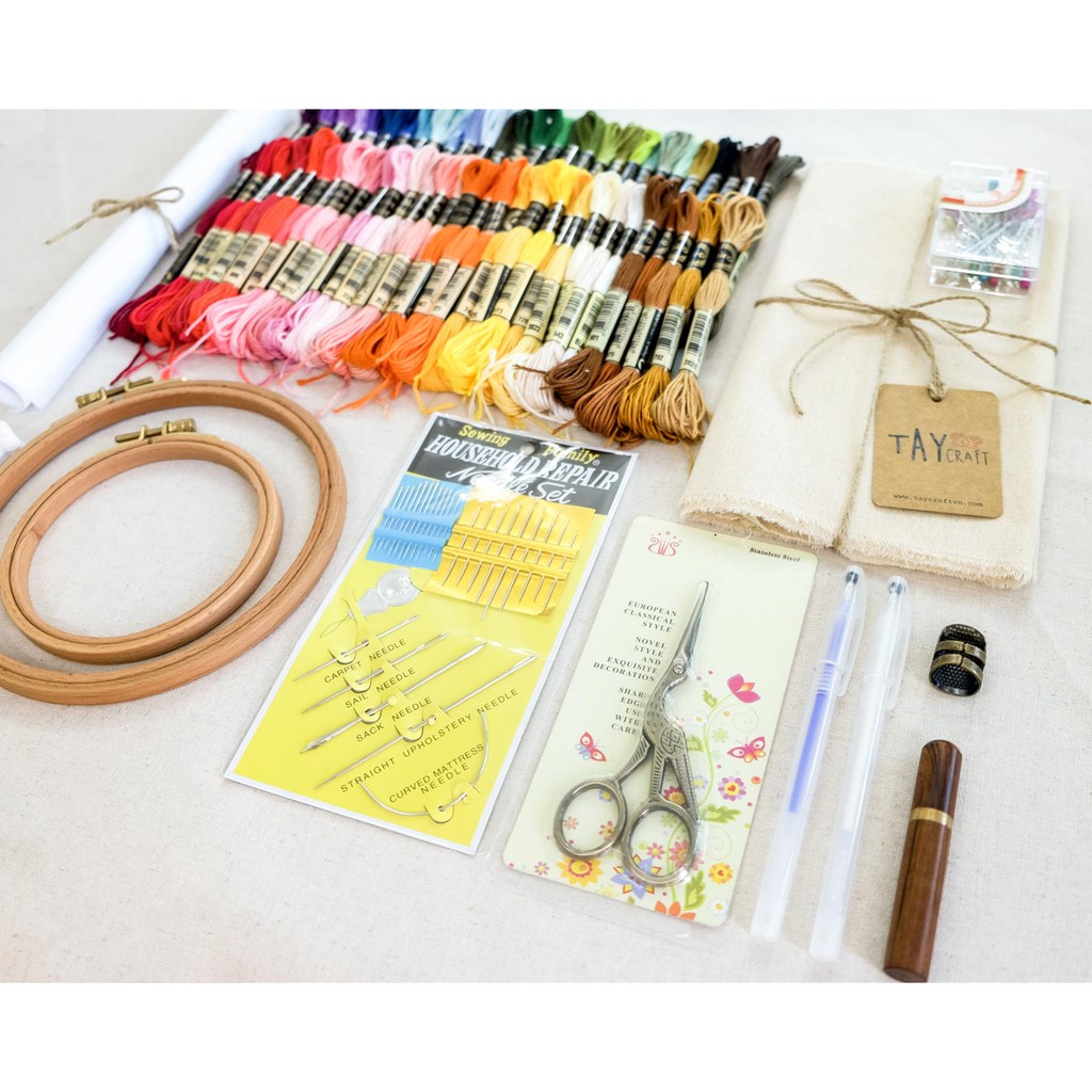 Sở thích & Sưu tầm > Dụng Cụ May Vá || [Set thêu Tiểu Học] Bộ nguyên liệu 60 màu chỉ thêu Airo + 02 Khung gỗ sồi + Dụng cụ thêu chất lượng cao đi kèmCòn hàng