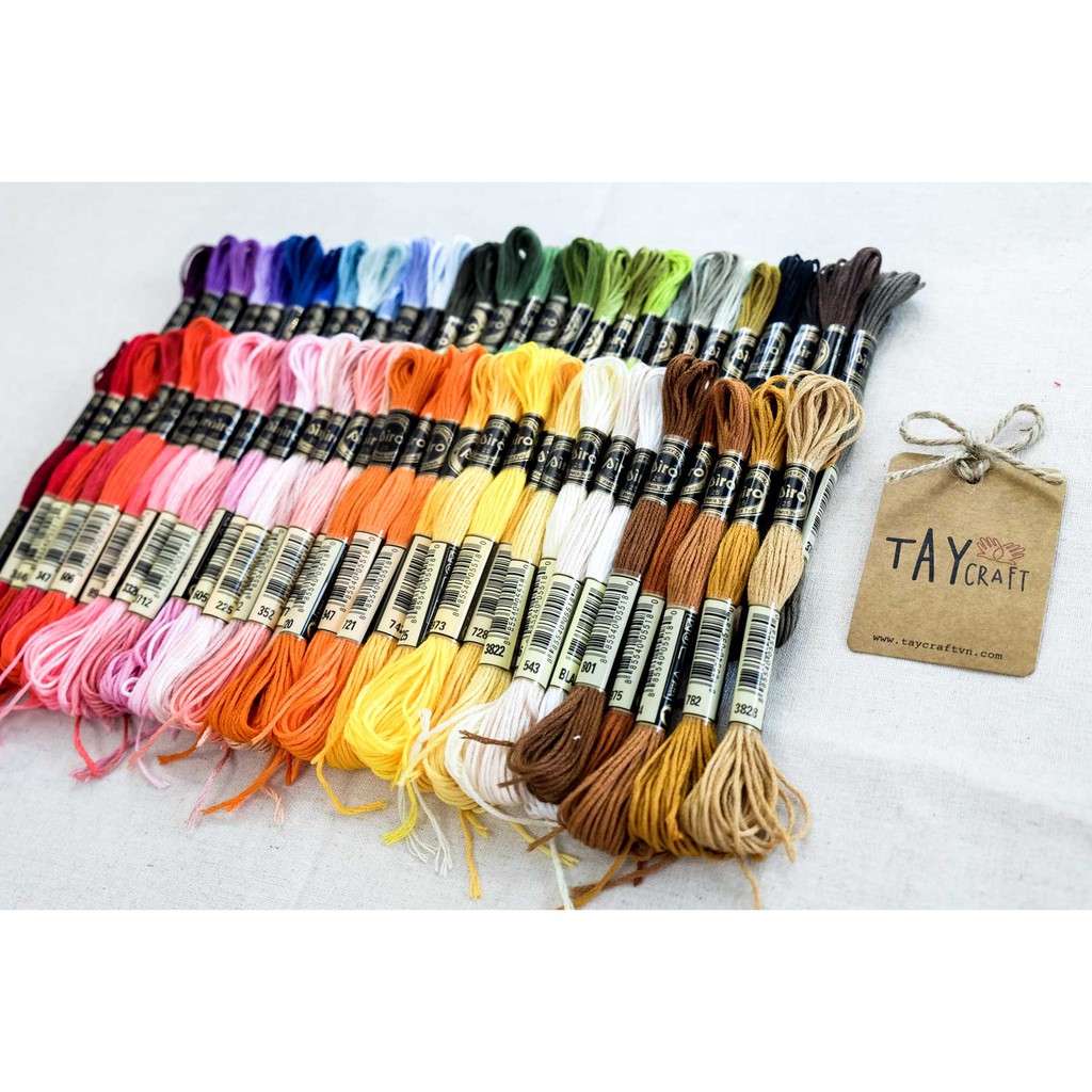 - 60 tép chỉ thêu Airo chính hãng gồm đầy đủ các gam màu thông dụng nhất giúp bạn tha hồ sáng tạo, chất lượng chỉ siêu tốt, được làm từ sợi eco-cotton sáng bóng hơn, dai hơn và không lo bị xù như các loại chỉ thông thường.