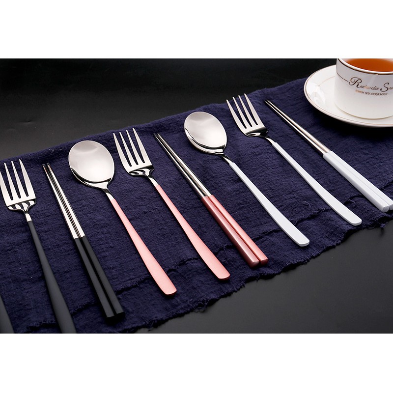 Set thìa dĩa đũa Hàn Quốc inox cao cấp nhiều màu (03 món)