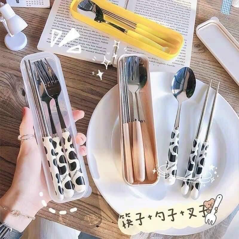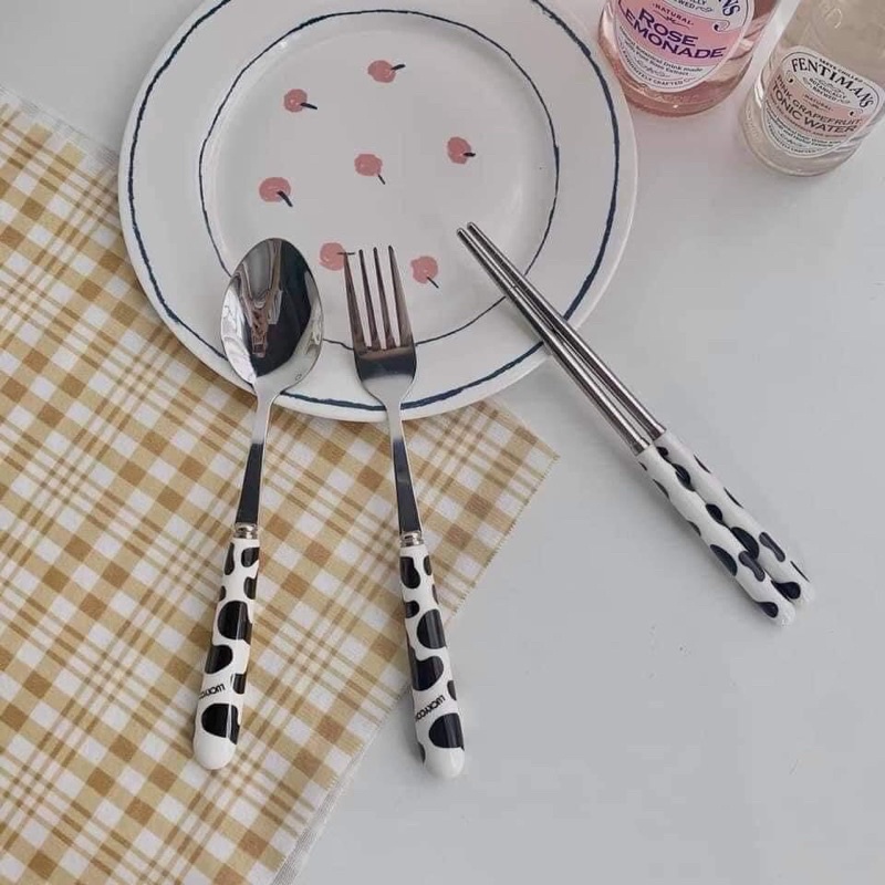 Nhà cửa & Đời sống > Bộ đồ bàn ăn > Dĩa || SET THÌA DĨA VÀ ĐŨA HỌA TIẾT BÒ SỮA (SIÊU XINH LUÔN - HOT TREND 2021)Còn hàng