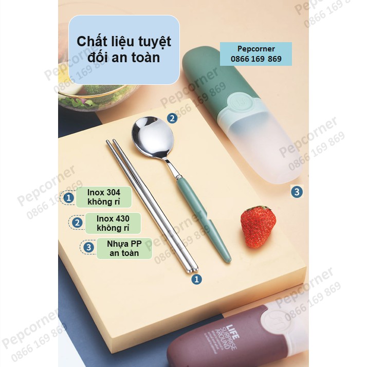 - Set thìa đũa được làm bằng chất liệu inox cao cấp không rỉ đảm bảo an toàn sức khỏe- Đũa bằng chất liệu 304 không rỉ, thìa bằng chất liệu inox 430 không rỉ, vỏ hộp bằng chất liệu PP an toàn