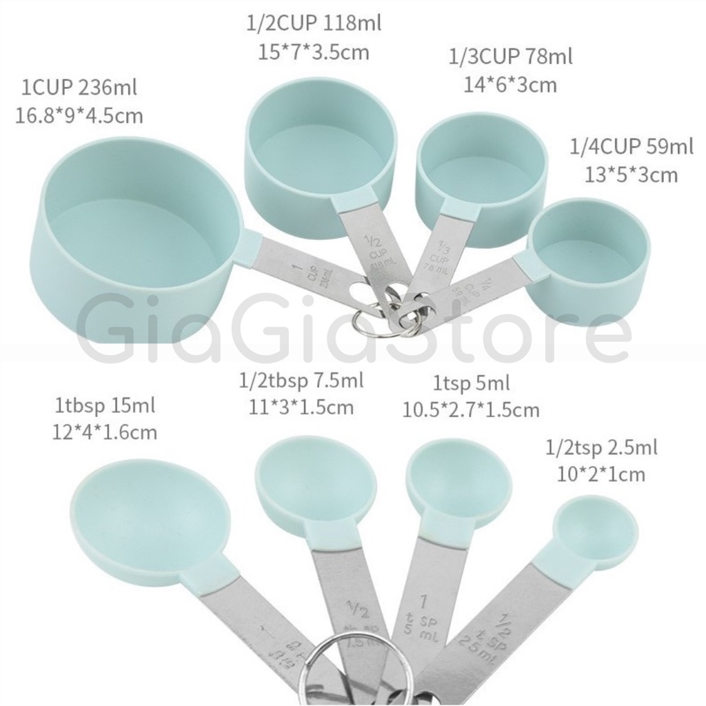 Giới thiệu Set thìa muỗng đong định lượng nguyên liệu dùng trong nấu ăn làm bánh nhà bếp 8 kích cỡ