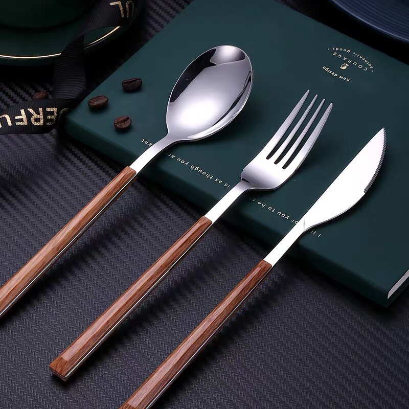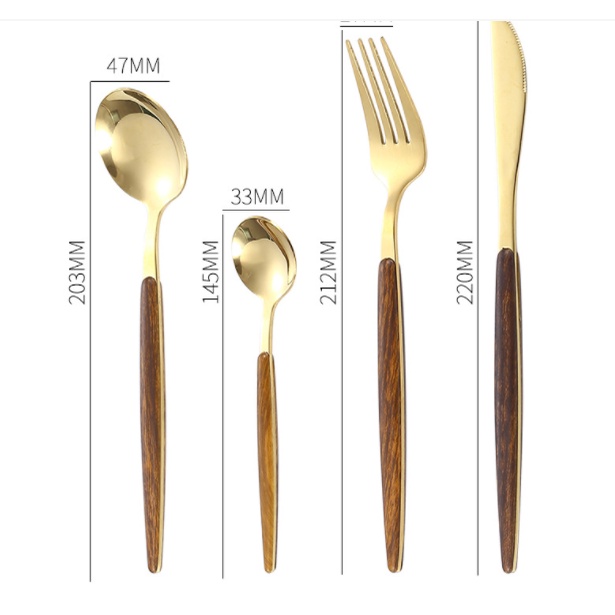 Nhà cửa & Đời sống > Bộ đồ bàn ăn > Dĩa || Set thìa nĩa dao mạ vàng cán gỗ sang trọng cho bàn ănCòn hàng