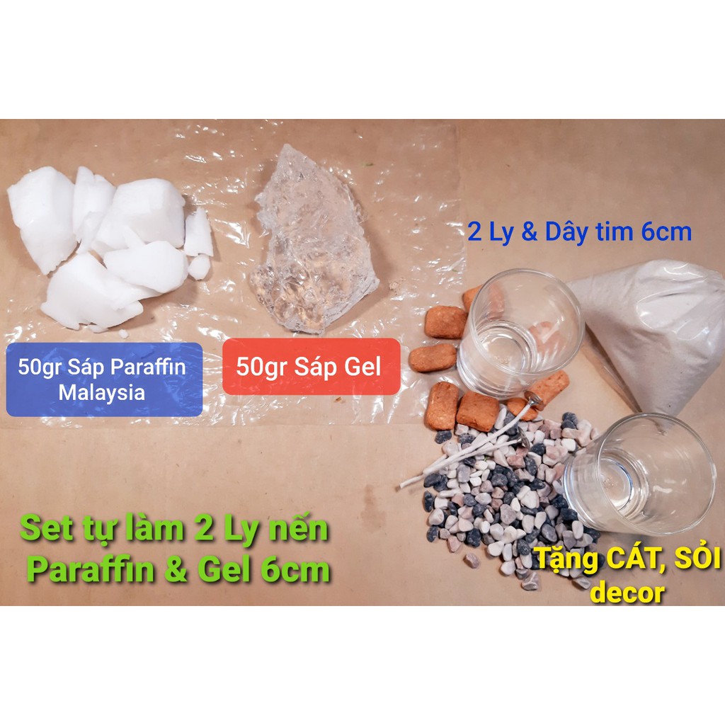 Giới thiệu Set tiết kiệm tự tay làm 2 Ly nến vừa tay sáp Paraffin Malaysia & GEL tặng CÁT, SỎI trang trí-9293store-9293kitdecor