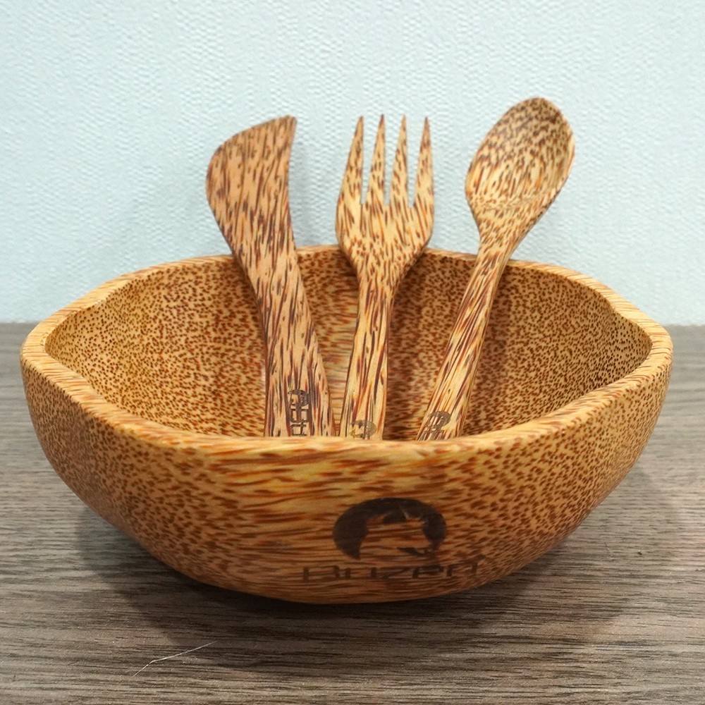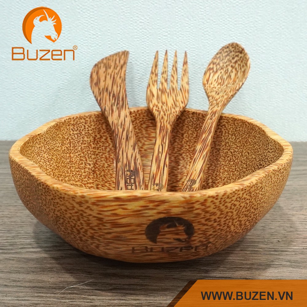 Set Tô nĩa dao gỗ dừa cao cấp BuzenTrọn bộ gồm: 1 tô gỗ dừa +2 nĩa + 1 dao ăn gỗ dừa