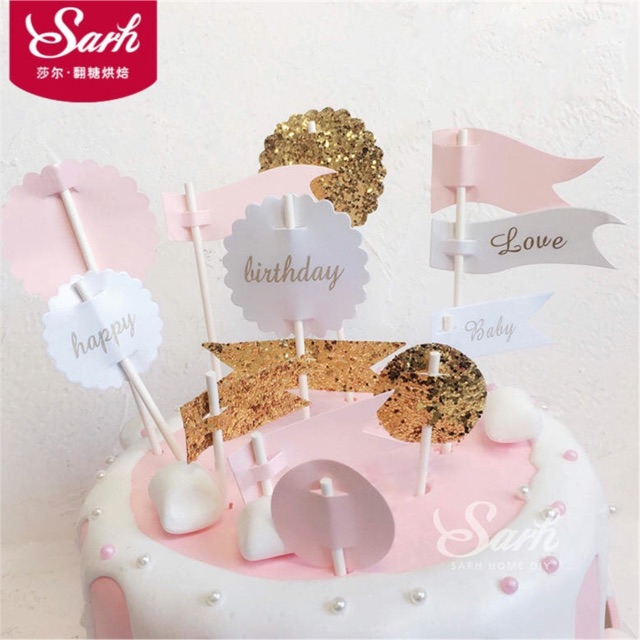 Nhà cửa & Đời sống > Dụng cụ nhà bếp > Dụng cụ nướng & trang trí bánh || Set topper cắm bánh cờ HPBD xanh/hồngCòn hàng
