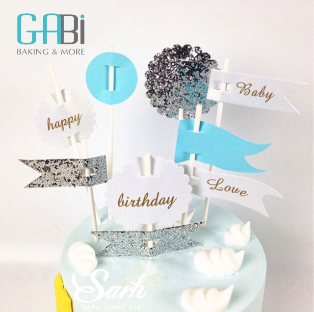 Giới thiệu Set topper cắm bánh cờ HPBD xanh/hồng