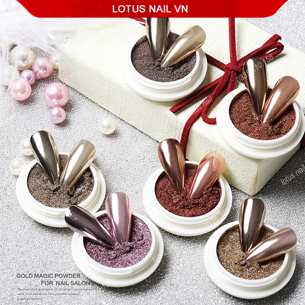 Set tráng gương nail 6 màu tone vàng trang trí móng
