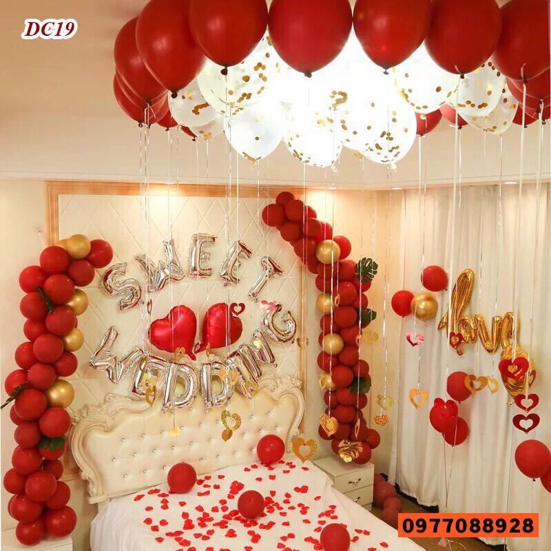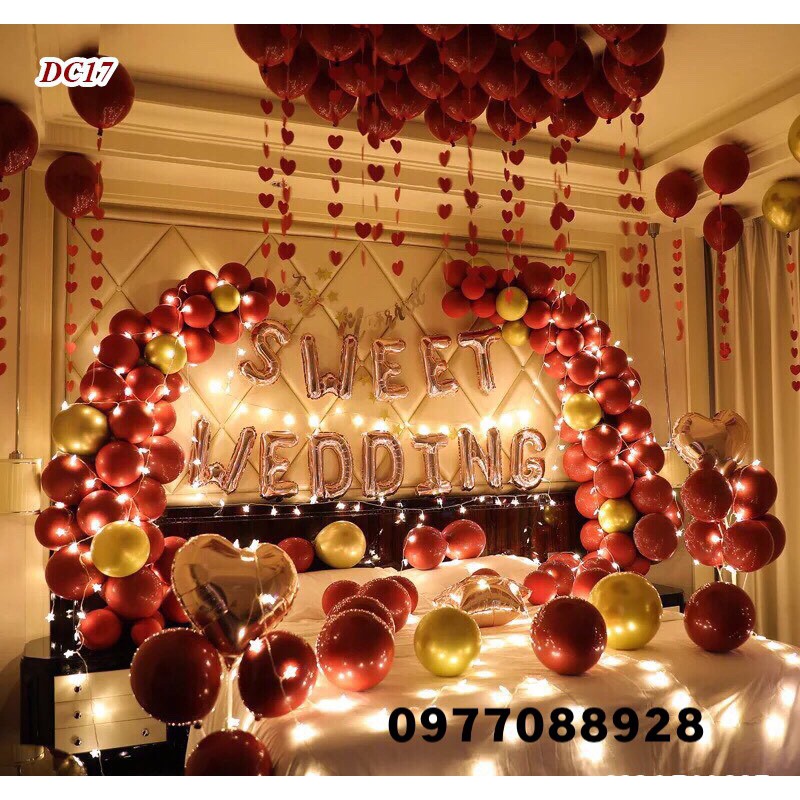 Tất cả các set Trang Trí Phòng Cưới đều được khuyến mại Bơm, Băng Dính và 30m Ruy Băng✔️ Set Trang Trí Phòng Cưới DC17 :