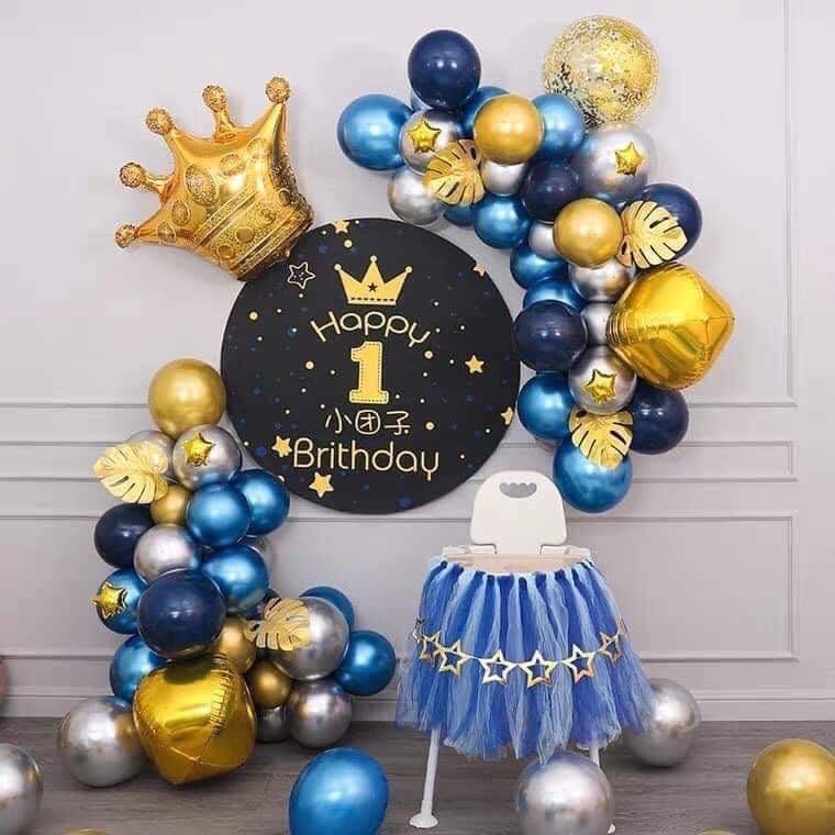 Set trang trí sinh nhật bé trai kèm backdrop tông xanh siêu nhũ siêu đẹp ạSET Y HÌNH ( không bao gôm ghế và voan quây ghế)