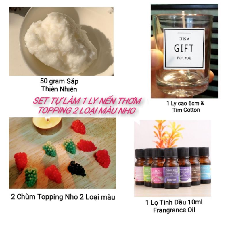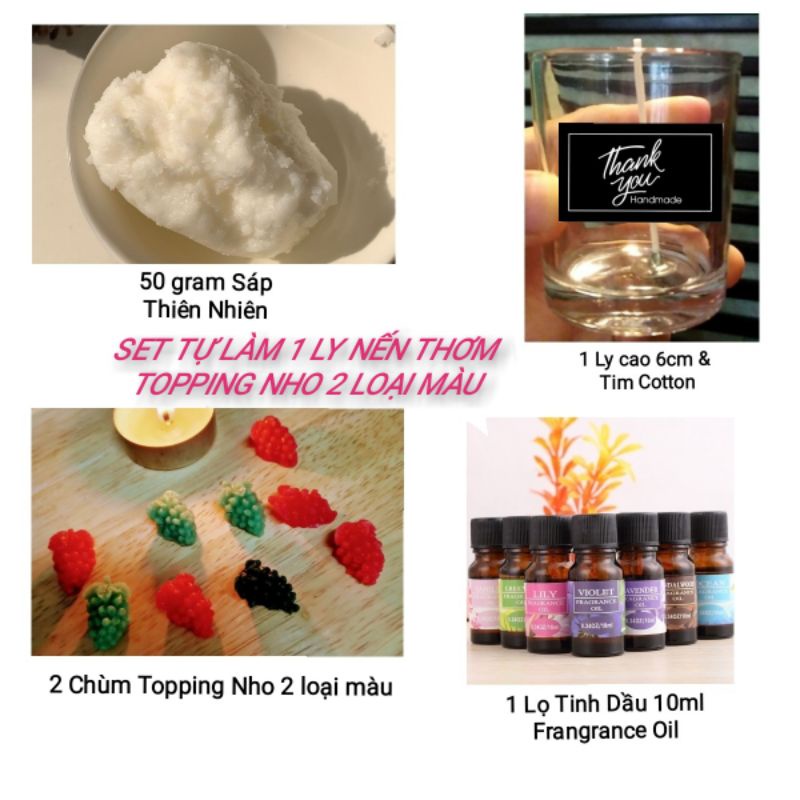 Set tự làm 1 Ly nến thơm Topping Nho 2 Loại Màu - 9293store - 9293kitdecor