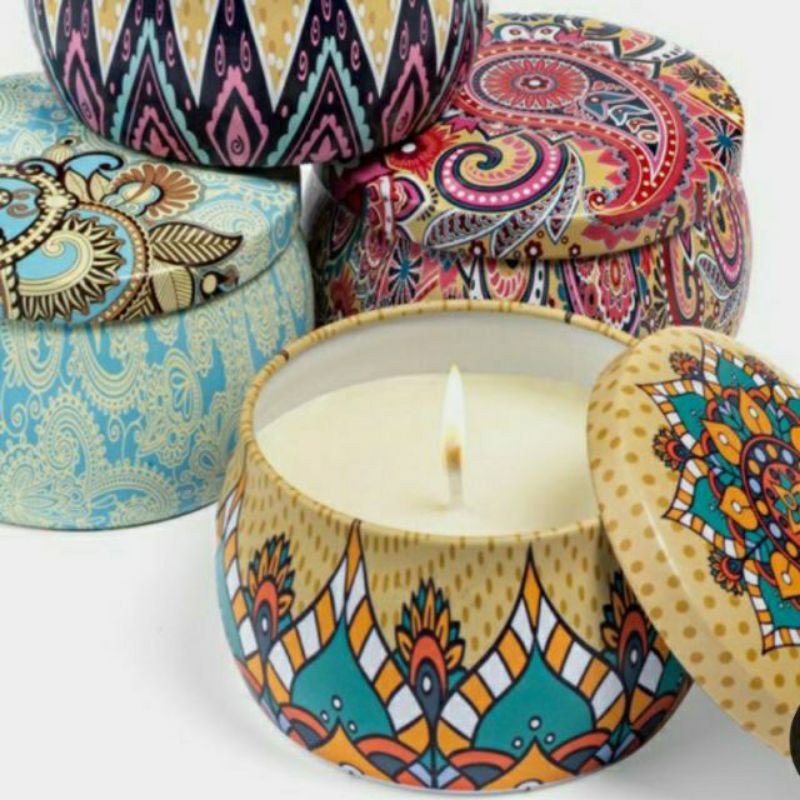 2. TỰ CHỌN mẫu Hộp nến tròn hoa văn Mandala Ấn độ