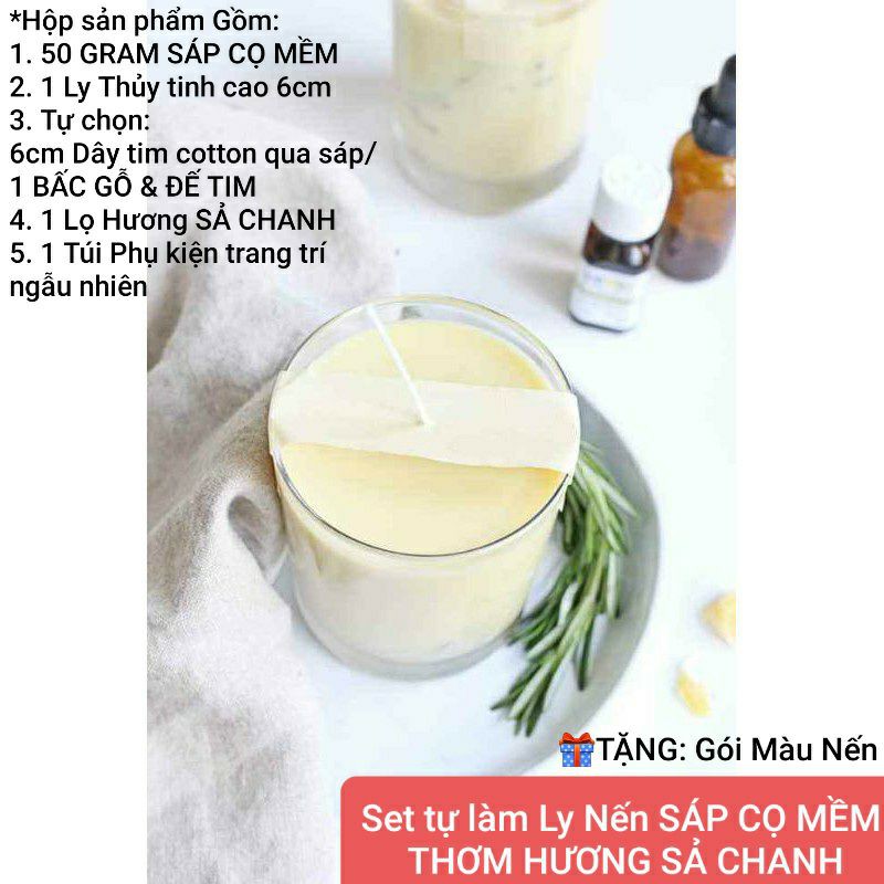 Giới thiệu Set tự làm Ly Nến Sáp CỌ MỀM THƠM HƯƠNG SẢ CHANH tự chọn Tim COTTON/BẤC GỖ - 9293store - 9293kitdecor