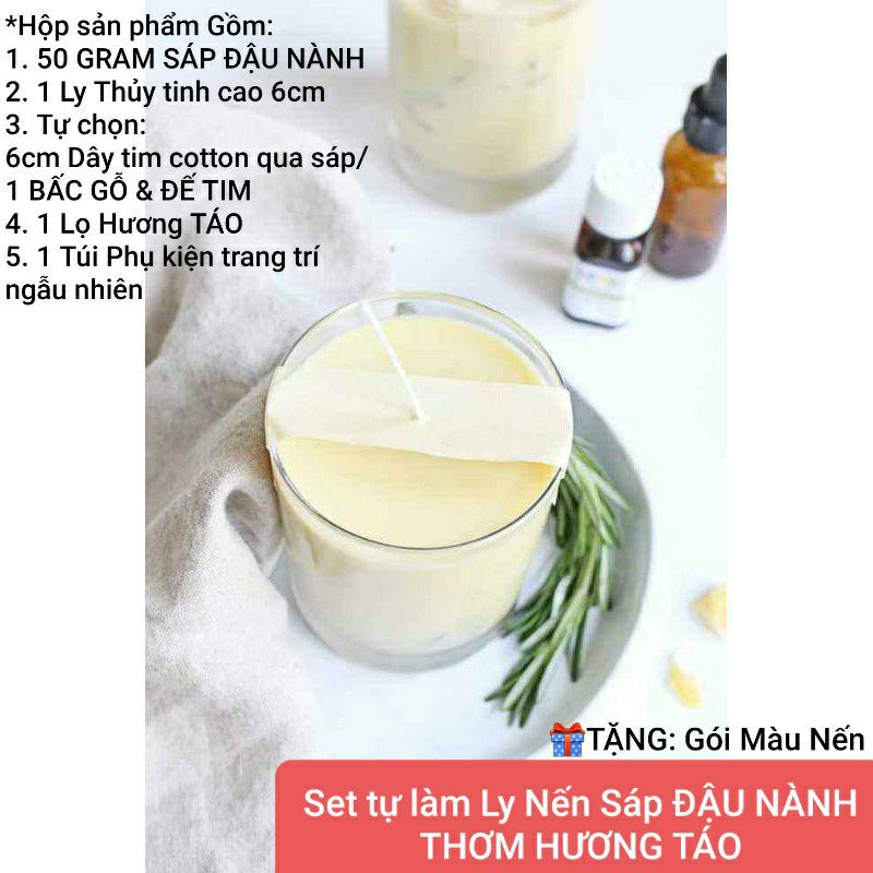 Nhà cửa & Đời sống > Trang trí nhà cửa > Nến & đồ đựng nến || Set tự làm Ly Nến Sáp ĐẬU NÀNH THƠM HƯƠNG TÁO tự chọn Tim COTTON/BẤC GỖ - 9293store - 9293kitdecorCòn hàng