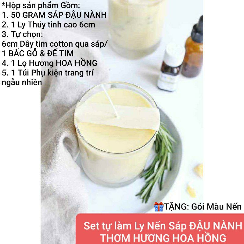 Nhà cửa & Đời sống > Trang trí nhà cửa > Nến & đồ đựng nến || Set tự làm Ly Nến Sáp ĐẬU NÀNH THƠM HƯƠNG HOA HỒNG tự chọn Tim COTTON/BẤC GỖ - 9293store - 9293kitdecorCòn hàng