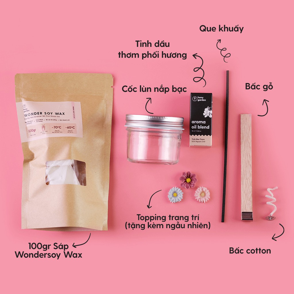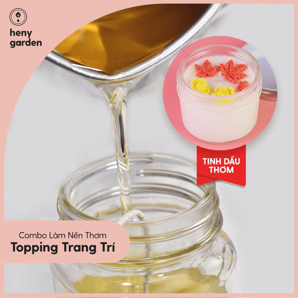Set Tự Làm Nến Thơm Handmade Topping Hoa Với Tinh Dầu Thơm Phối Hương Heny Garden - Nguyên Liệu Làm Nến Thơm Cao Cấp
