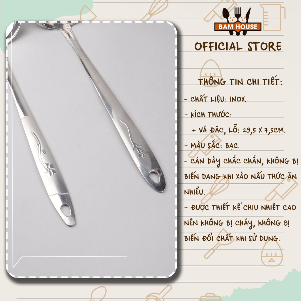 Nhà cửa & Đời sống > Dụng cụ nhà bếp > Khác || Set Vá đặc, Vá lỗ inox Bam House cán hoa loại trung cao cấp siêu bền SCHT20 - Gia dụng bếpCòn hàng