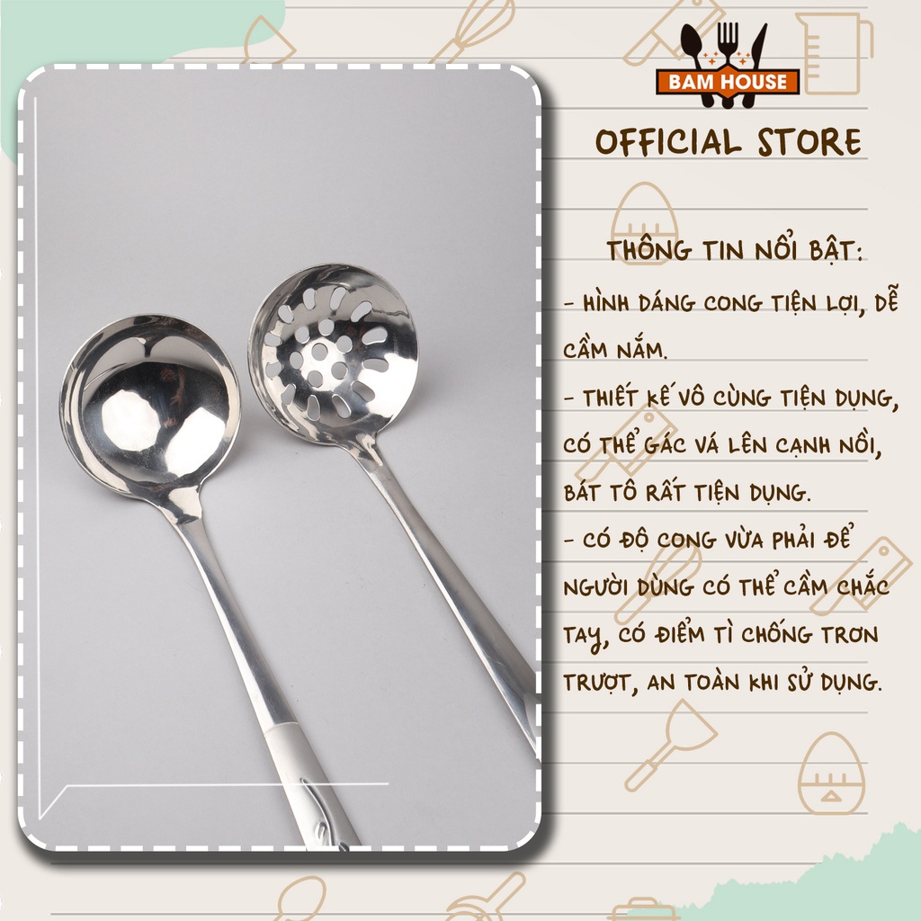 Set Vá đặc, Vá lỗ inox Bam House cán hoa loại trung cao cấp siêu bền SCHT20 - Gia dụng bếpTrong cuộc sống hiện đại ngày nay, không gian nhà bếp của mỗi gia đình đã thay đổi hơn xưa rất nhiều, đặt biệt là dụng cụ làm bếp, với rất nhiều mẫu mã đa dạng, phát minh tiện dụng đã giúp cho việc làm bếp trở nên dễ dàng hơn bao giờ hết