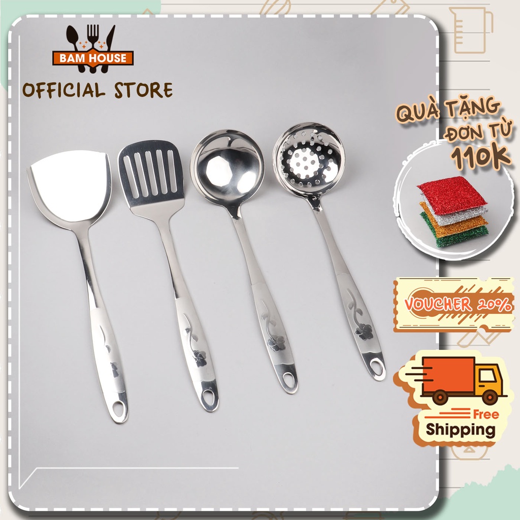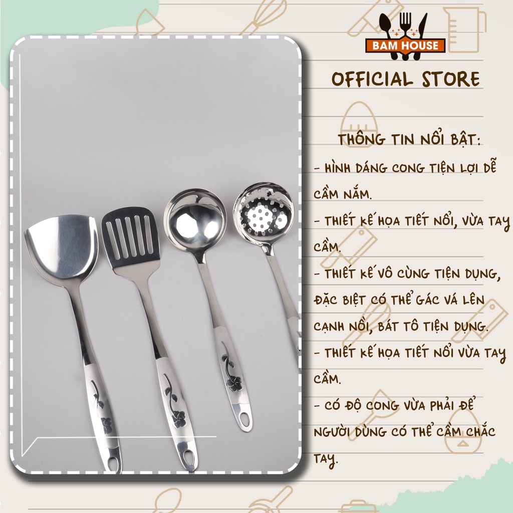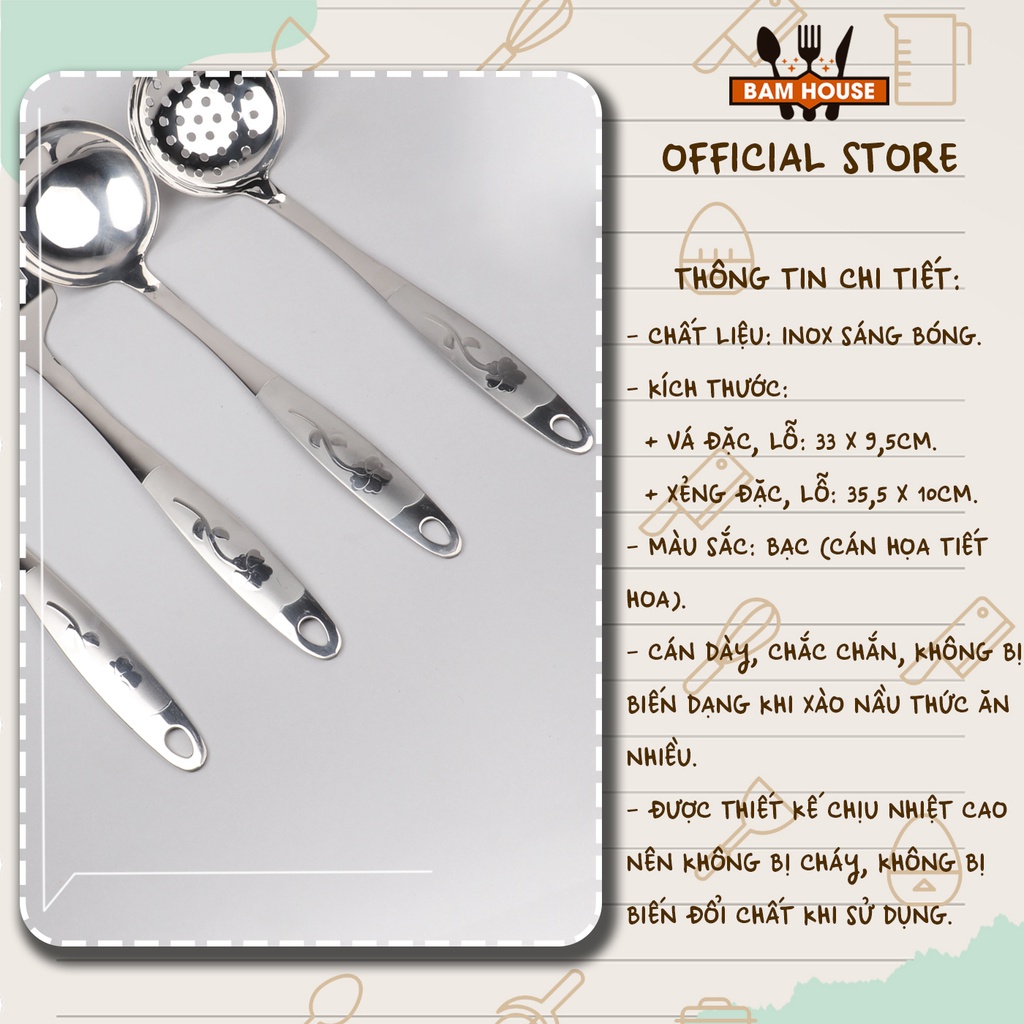 Nhà cửa & Đời sống > Dụng cụ nhà bếp > Cây vét bột & đồ gắp thức ăn || Set Vá đặc, Vá lỗ, Xẻng đặc, Xẻng lỗ inox Bam House cán hoa loại lớn cao cấp siêu bền SCH05 - Gia dụng bếpCòn hàng
