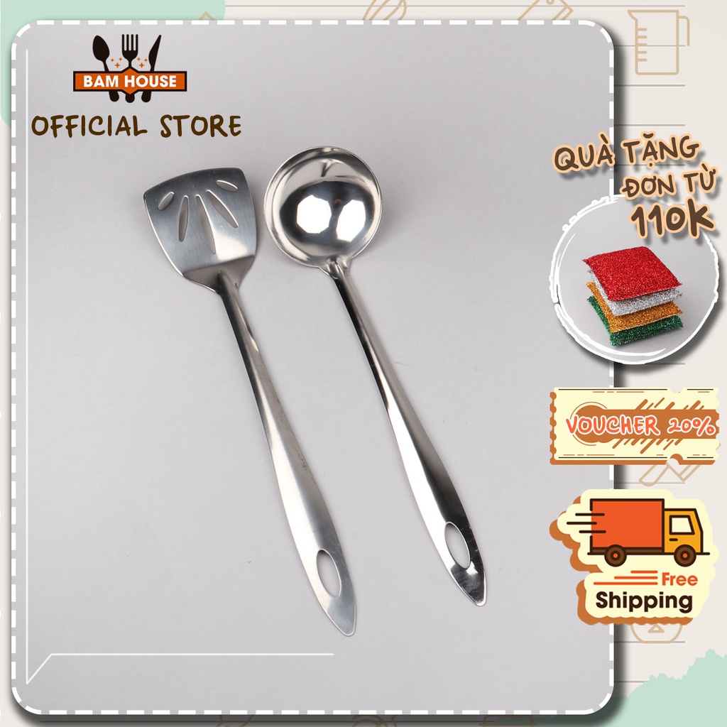 Nhà cửa & Đời sống > Dụng cụ nhà bếp > Cây vét bột & đồ gắp thức ăn || Set Vá đặc, Xẻng lỗ inox Bam House cán trơn cao cấp siêu bền SCT24 - Gia dụng bếpCòn hàng