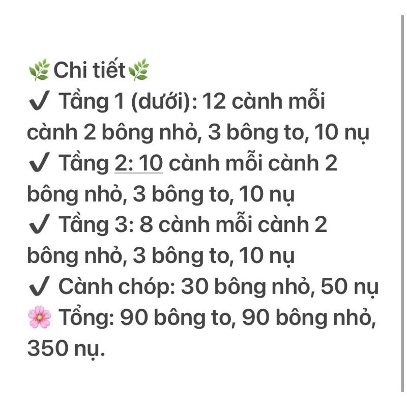 - Đá làm hoa đầy đủ (90 bông to, 90 bông nhỏ, 350 nụ)