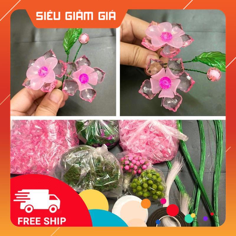 Giới thiệu Set vật liệu khoảng 130 bông hoa mai đào handmade,không gồm gốc Handmade