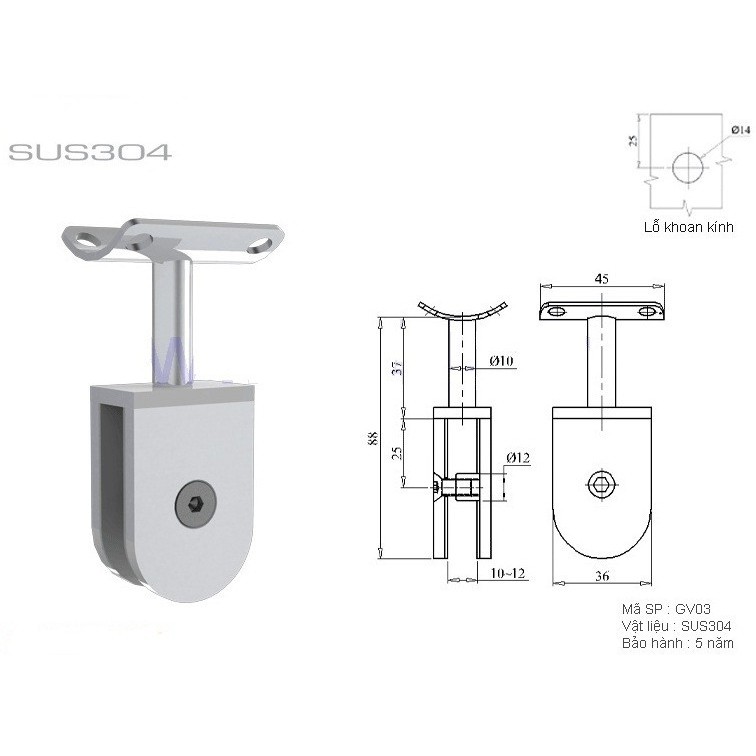 Giới thiệu SET10 tay kẹp kính trên - kẹp kính tay vịn inox Cầu thang & trụ lan can inox