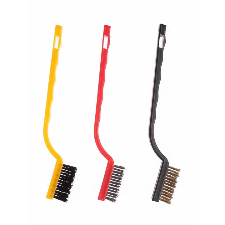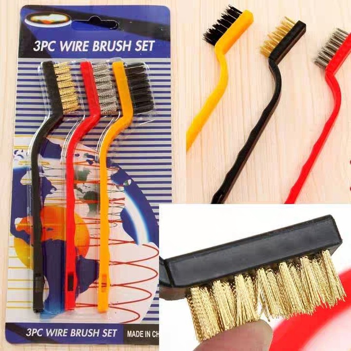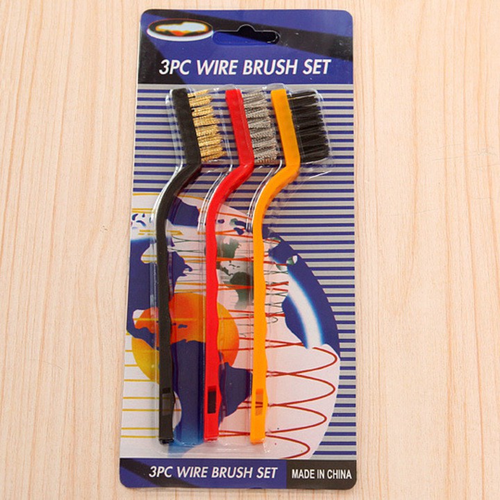 Bộ 3 bàn chải sắt. Dùng bàn chải cọ rửa giữ cho đồ vật luôn sạch sẽ và bảo quản tốt, giúp bạn tiết kiệm chi phí và thời gian tối ưu. Bàn chải thiết kế bằng sợi kim loại nhỏ có độ cọ sát cao, giúp bạn chà rửa tiện lợi. Đặc biệt, với bản nhỏ và mỏng cán cong, giúp bàn chải đi vào các khe rãnh nhanh chóng, vệ sinh dễ dàng.nhau, giúp bạn dễ dàng làm sạch rỉ sét nhanh chống.