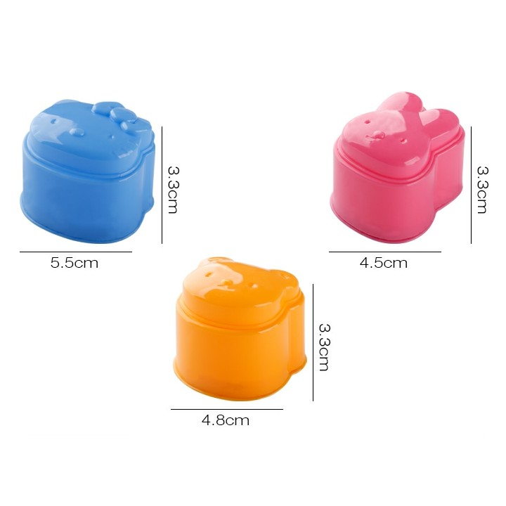 Bộ 3 khuôn ép cơm bento bánh hình thú cho béKích thước : xem trên hình