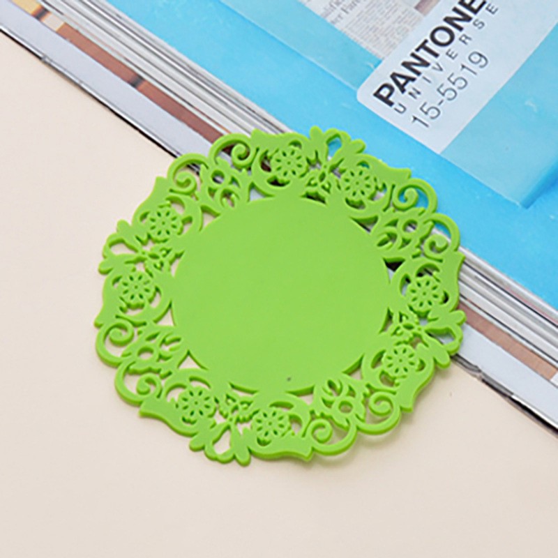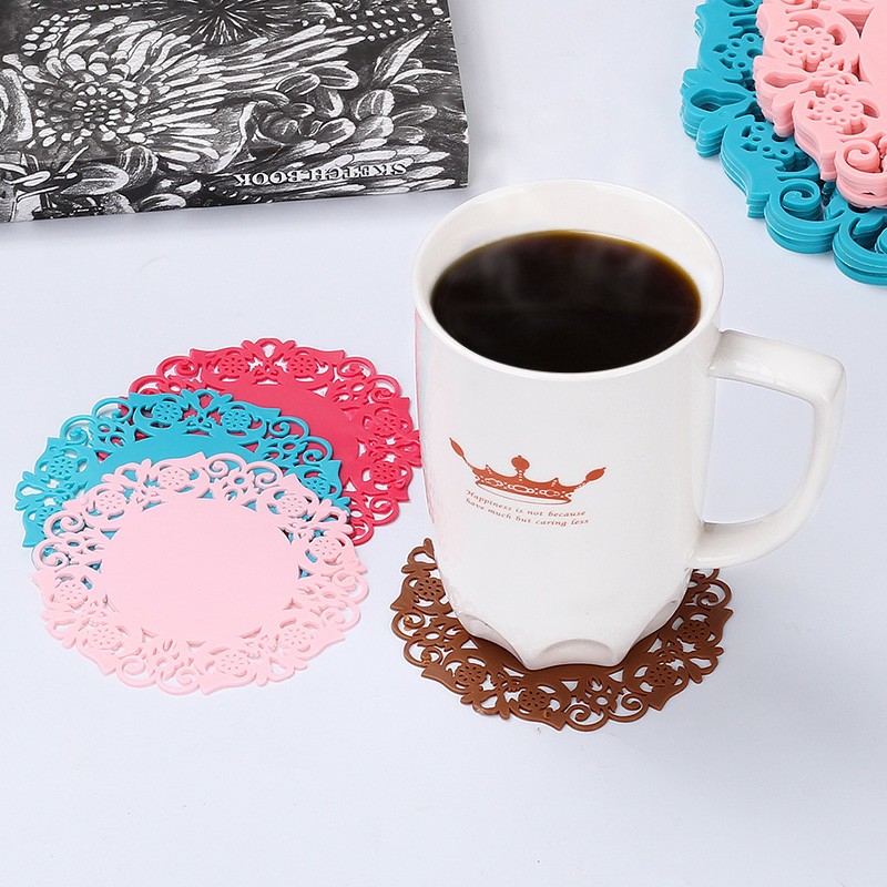 Miếng đế lót ly cốc nhựa dẻo hình bông hoa cute. Mang phong cách cổ điển, màu sắc tươi tắn, cách nhiệt, chống trượt.