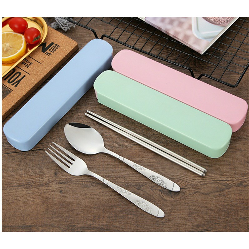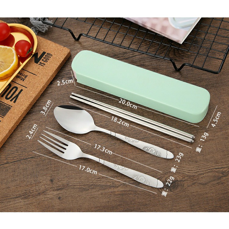 Chất liệu : Muỗng đũa nĩa inox. Hộp nhựa PP